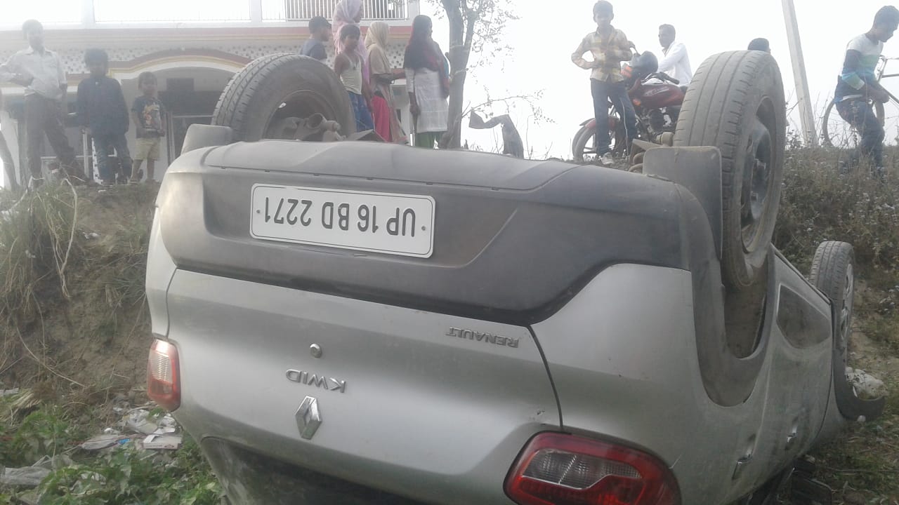 गाड़ी ग्राम अटरा महादेव की बताई जा रही है कार ड्राइवर पप्पू चला रहा था हादसे में किसी के हताहत होने की खबर नहीं।