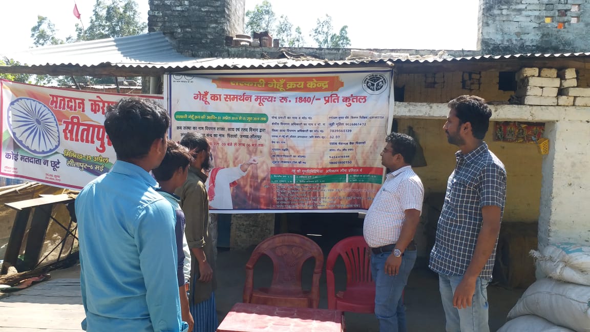 पिसावां (सीतापुर)गेहूं खरीद क्रय केंद्रो पर गेहूं खरीद के लिये तैयारियां पूर्ण लेकिन किसान नहीं लाये गेहूँ सेजखुर्द गांव मे खाद्य विभाग के प्रभारी मनोरंजन चौबे ने बैनर लगाकर किसानों का इंतजार करते रहे उन्होंने बताया कि एक हजार बोरा के साथ पचीस लाख रूपये की व्यवस्था है यहां पर दो कांटा छलना नमी मापक यंत्र आदि की व्यवस्था की गई है वहीं बरगांवा व मूडाकला के पी सी एफ के प्रभारी कमलेश कुमार शुक्ला ने बताया गेहूँ खरीद के लिये व्यवस्था दुरुस्त है दोनों केंद्रो पर पांच पांच सौ बोरा व दो दो लाख रूपया आया है उन्होंने बताया अभी गेहूँ की कटाई नहीं हुई है किसान केंद्र पर आ कर सम्पर्क कर रहे है।