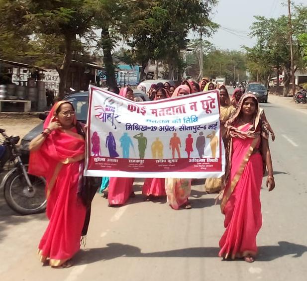 पिसावां (सीतापुर) पहले मतदान करो बाद में घर का काम करो के नारों के साथ आंगनवाड़ी कार्यकत्रियों ने निकली रैली।