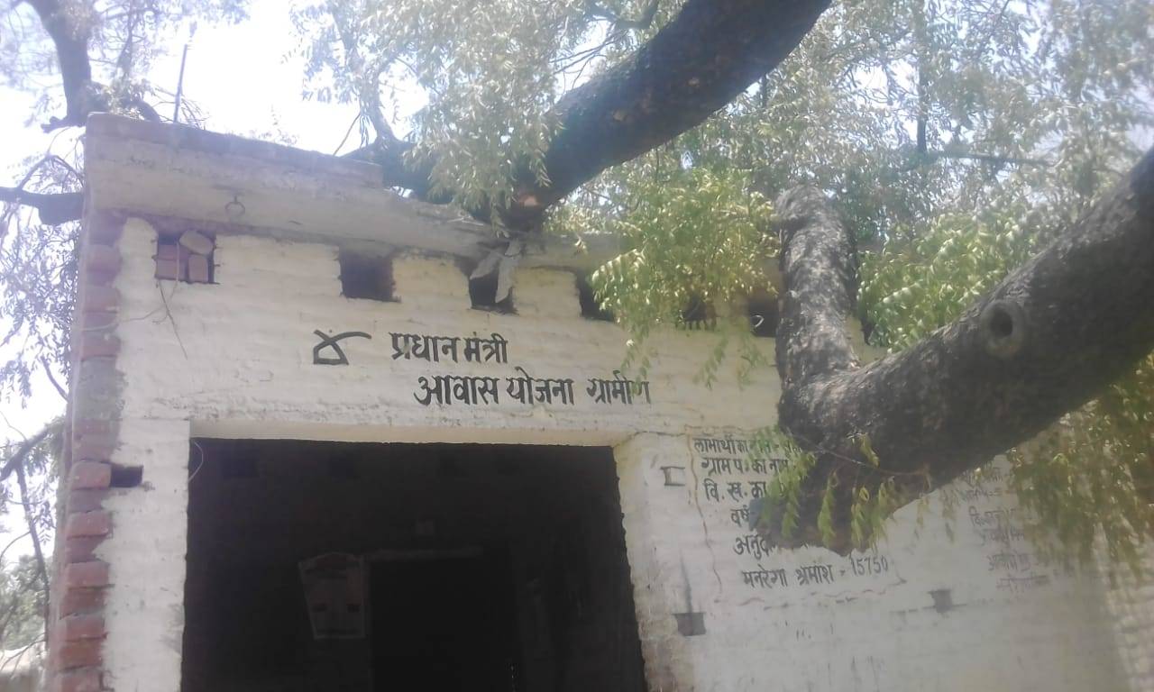 प्रधानमंत्री आवस के ऊपर आंधी में गिरा नीम का पेड़ आवास हुआ क्षतिग्रस्त