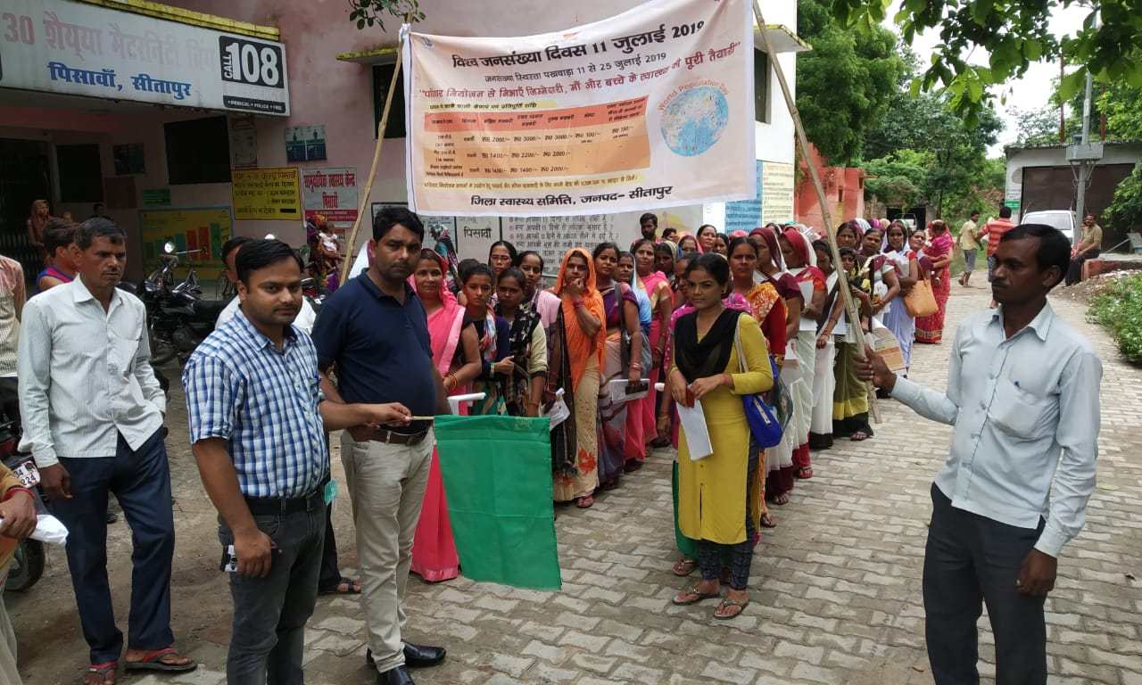 पिसावां (सीतापुर) : बढती जनसंख्या पर दाम्पत्य परिवार की जिम्मेदारी है कि परिवार सीमित रखे। तभी देश तथा परिवार सुखी जीवन व्यतीत करेगा।  गुरुवार को सामुदायिक स्वास्थ्य केंद्र से आशा बहू एनम तथा आंगनबाड़ी कार्यकत्री द्वारा क्षेत्र मे रेली निकाल कर लोगो को सीमित परिवार रखने के लिये जागरूक किया गया। इस अवसर पर डाक्टर पूर्णिक पटेल ने रैली को हरी झंडी दिखाकर रैली को रवाना किया।  उन्होंने बताया कि आज देश की जनसंख्या तेजी से बढ रही है जो भविष्य के लिये खतरनाक है । जिसको सीमित रखने के लिये सभी दामपत्य परिवार के लोगो की जिम्मेदारी है, कि सीमित परिइ रखने से ही सुखी जीवन बिताया जा सकता है तभी बच्चो की शिक्षा सहित अनेक तरह से परवरिश अच्छी हो सकती है।  उन्होंने बताया कि सीमित परिवार रखने मे पुरूषो का सहयोग जरूरी है।  इस अवसर पर रैली मे हम दो हमारे दो तथा छोटा परिवार सुखी परिवार बच्चे दो ही अच्छे के नारेबाज़ी कर लोगों को जागरूक किया। इस अवसर पर एच ओ आनंद कुमार यादव, दुर्गेश सिंह, तरूण त्रिवेदी, नेहा सिंह, सीमा प्रशाली शुक्ला, विनीता सिंह , मधुबाला, सीमा सहित काफी लोग मौजूद रहे।