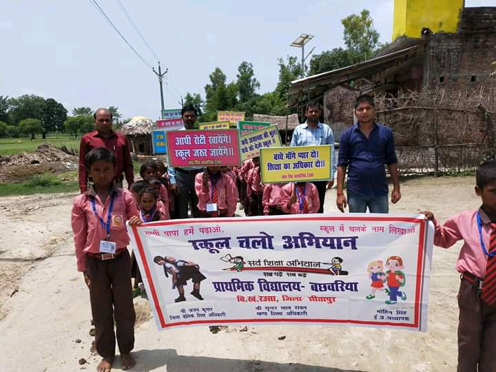 रेउसा/सीतापुर: खंड शिक्षा अधिकारी के मार्गदर्शन में प्राथमिक विद्यालय बछवरिया में स्कूल चलो अभियान की रैली का आयोजन किया गया जिसमें विद्यालय प्रबन्ध समिति के अध्यक्ष एवं सम्मानित सदस्यों सहित अभिभावकगण एवं विद्यालय के प्रभारी प्रधानाध्यापक मोहित सिंह एवं सहायक अध्यापक वीरेंद्र कुमार व योगेंद्र पाल सिंह महेश कुमार मौर्य समायोजित शिक्षा मित्र व ग्राम सभा के कोटेदार किशोरी लाल व अन्य उपस्थित रहे।