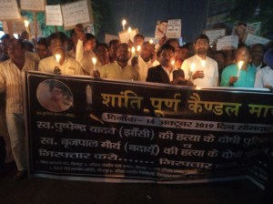 कैंडल मार्च में स्व0 पुष्पेंद्र यादव के फर्जी एनकाउंटर (झांसी) तथा बृजपाल मौर्य की पुलिस कस्टडी( बदायूं)में हुई मौत की निष्पक्ष जांच उनको न्याय दिलाने। परिवार के एक सदस्य को नौकरी तथा परिवार के भरण पोषण हेतु एक करोड़ रुपए की आर्थिक मदद हेतु लालबाग शहीद पार्क से गांधी पार्क आंख अस्पताल सीतापुर तक शांतिपूर्ण कैंडल मार्च निकाला कर दिवंगत आत्माओं को भावभीनी श्रधांजलि अर्पित करते हुए प्रमुख तीन मांगों का ज्ञापन माननीय जिलाधिकारी द्वारा मुख्यमंत्री को सम्बोधित भेजा गया।