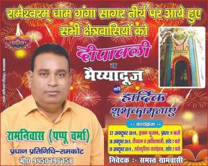 स्थानीय श्री रामेश्वरम् धाम मंदिर व प्राचीन गंगा सागर तीर्थ परिसर में आयोजित तीन दिवसीय दीपावली मेला के दूसरे दिन हर वर्ष की भांति इस वर्ष भी दीपदान व मशहूर आतिशबाजी का आयोजन हुआ।