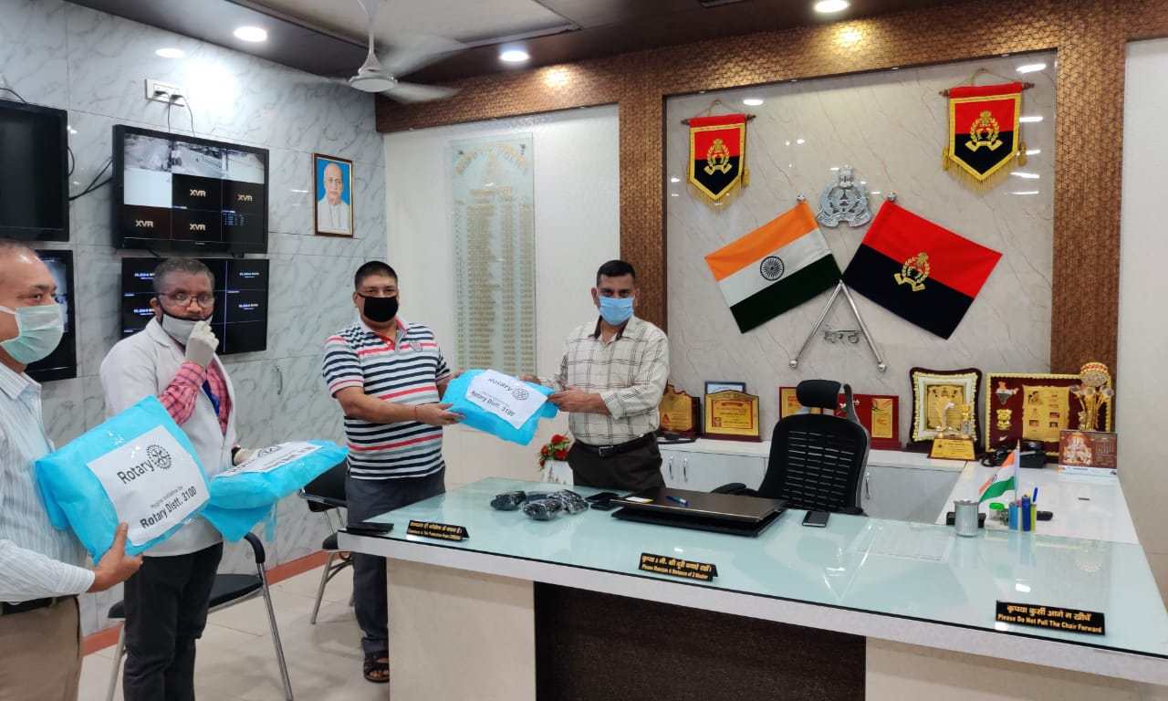 मेरठ: समाज की सुरक्षा के लिए हमारा पुलिस विभाग रात दिन सेवारत है उनके अपने निजी अनमोल जीवन भी दांव पर लगे हुए हैं।ऐसे में रोटरी क्लब मेरठ सिटी ने अपने आंशिक योगदान के रूप में 20 पीपीई किट आज श्री अखिलेश नारायण सिंह एस पी सिटी को क्लब अध्यक्ष एवं पी एच एफ मुकेश बंसल ने भेंट किया।इस अवसर पर क्लब के पूर्व अध्यक्ष एवं पी एच एफ नीरज कौशिक,डी के पाण्डेय एवं शिवम बंसल मौजूद रहे।