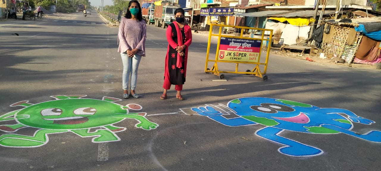 सीतापुर। देश भर में वैश्विक महामारी कोविड 19 को लेकर लॉक डाउन जारी है। वहीं इससे जंग जीतने के लिए सोशल डिस्टेंसिंग को अपनाते हुए लोगो को कोरोना से बचाव के लिए जागरूक करने का काम किया जा रहा है। इस कड़ी में जनपद में कोरोना वायरस से जागरूकता के तहत बहुत सुंदर पेंटिंग बनाई गई l