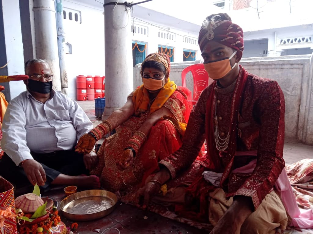वर-वधू ने मास्क पहन कर पूरी की रस्म, वैवाहिक कार्यकम में कुल 20 लोगों ने की शिरकत