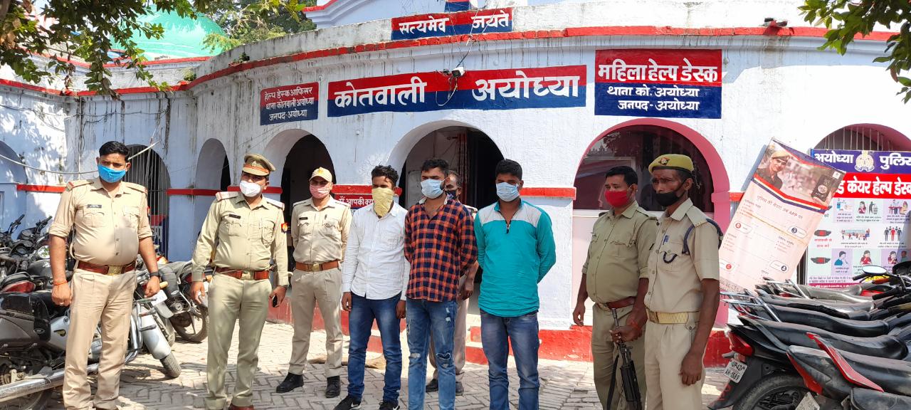 मालूम हो कि अयोध्या पुलिस को जानकारी मिली कि कोतवाली अयोध्या क्षेत्र के माझा बारहटा इलाके में रात को खनन माफिया अवैध बालू का खनन कर रहे हैं। एसएसपी दीपक कुमार के निर्देश पर डीएसपी निपुण कुमार अग्रवाल की टीम ने जब नदी के तलहटी इलाके में छापेमार कार्रवाई की तो मौके से अवैध रूप से बालू की खुदाई कर रही जेसीबी मशीन, एक ट्रैक्टर-ट्रॉली, सात मोटरसाइकिल, 2 मोबाइल फोन के साथ अवैध खनन में शामिल तीन लोगों को गिरफ्तार किया गया।