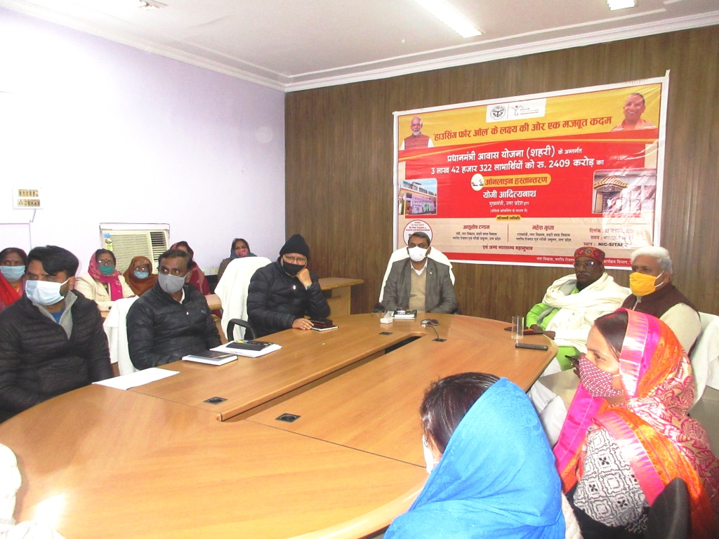 सीतापुर: प्रदेश के मा0 मुख्यमंत्री जी द्वारा सभी के लिये आवास के लक्ष्य की ओर एक मजबूत कदम बढ़ाते हुये प्रदेश के 03 लाख, 42 हजार 322 लाभार्थियों को प्रधानमंत्री आवास योजना शहरी के अंतर्गत रू0 2409 करोड़ का आॅनलाइन हस्तान्तरण किया गया।