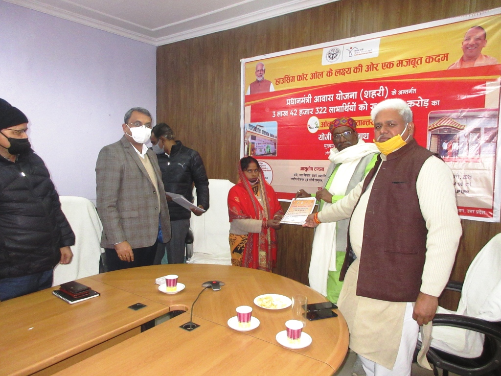 सीतापुर: प्रदेश के मा0 मुख्यमंत्री जी द्वारा सभी के लिये आवास के लक्ष्य की ओर एक मजबूत कदम बढ़ाते हुये प्रदेश के 03 लाख, 42 हजार 322 लाभार्थियों को प्रधानमंत्री आवास योजना शहरी के अंतर्गत रू0 2409 करोड़ का आॅनलाइन हस्तान्तरण किया गया।