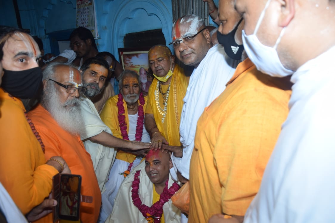 अयोध्या। रामकोट क्षेत्र स्थित मंगल भवन मंदिर का नया महंत मंगलवार को अयोध्या के सभी धर्म आचार्यों ने कंठी चद्दर भेंट कर व तिलक लगाकर रामभूषणदास उर्फ कृपालु जी महाराज को बनाया।