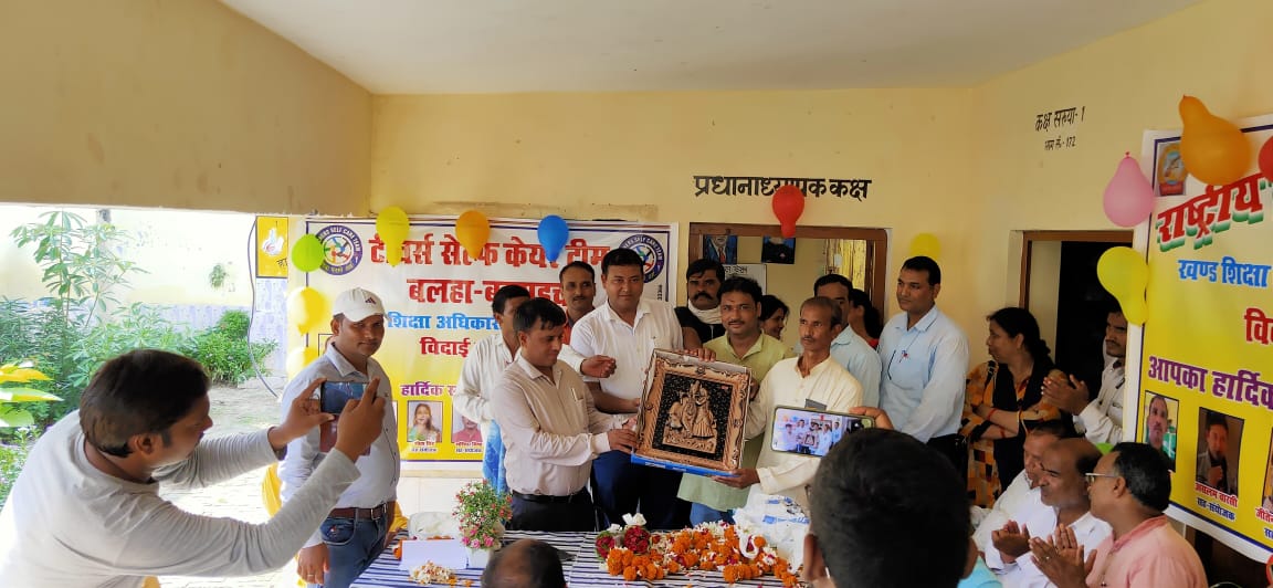 जिसमे खंड शिक्षा अधिकारी ने अपने विदाई भाषण में शिक्षको को धन्यवाद देते हुए कहा कि वर्तमान परिवेश में शिक्षको को शासन द्वारा निर्गत सूचनाओं से अपडेट रहना चाहिए। सही और समयबद्ध सूचना शिक्षको के लिए बहुत महत्वपूर्ण होती है। उपरोक्त कार्यक्रम में उच्च प्राथमिक शिक्षक संघ के अनिल श्रीवास्तव ने खण्ड शिक्षा अधिकारी के 4 वर्षों के अनुशासित कार्यकाल के दौरान शिक्षक अधिकारी एक परिवार की तरह व्यवहाररूप में लाये जाने की बात को सराहा। टीचर्स सेल्फ केयर टीम बलहा के संयोजक भूपेंद्र मौर्य, शिक्षिका नेहा शर्मा व श्वेता शर्मा ने अपनी यादों के झरोखे में खण्ड शिक्षा अधिकारी के कार्यो की प्रशंसा किया। राष्ट्रीय शैक्षिक महासंघ के ब्लॉक संयोजक डी डी पटेल जी ने कहा कि कोई भी अधिकारी जब शिक्षको के प्रति अच्छे मन से कार्यशैली का प्रयोग करता है तो वह शिक्षको का हृदयस्त हो जाता है। और तब शिक्षक उस अधिकारी को मन से सम्मान करता है।आज फूल चंद मौर्य जी का सम्मान एक अधिकारी के रूप में शिक्षको द्वारा उसी श्रद्धाभाव से किया जा रहा है।