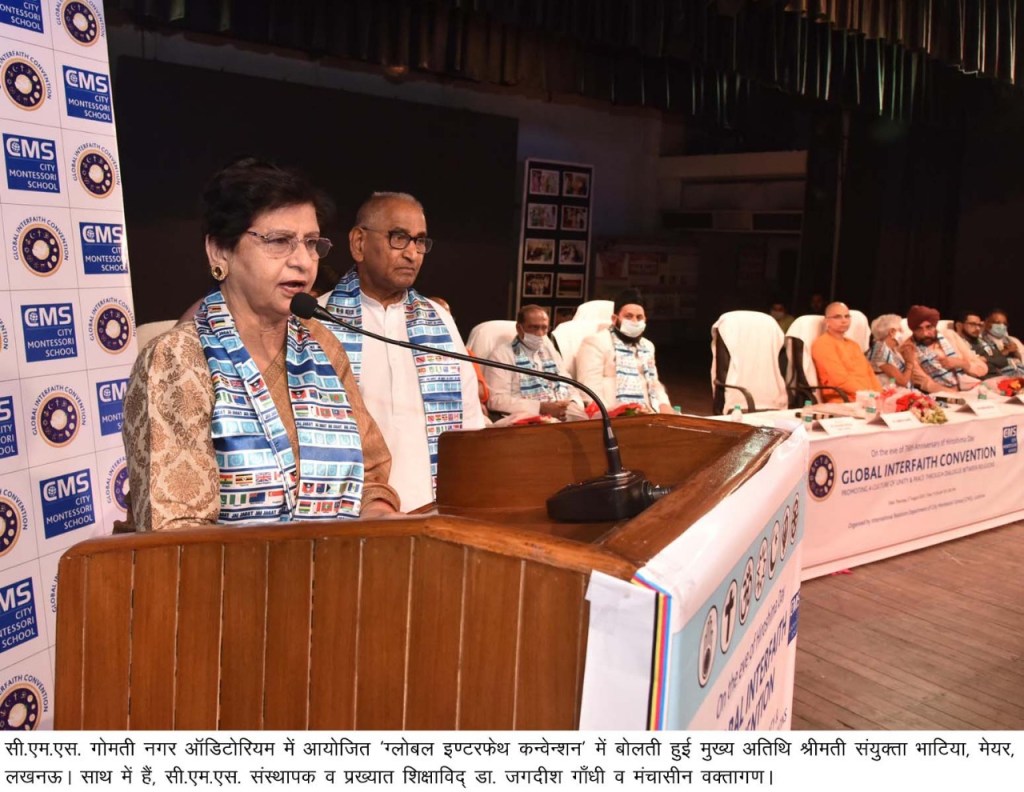 इससे पहले, सम्मेलन की मुख्य अतिथि व लखनऊ की मेयर श्रीमती संयुक्ता भाटिया ने सम्मेलन का विधिवत् उद्घाटन किया। इस अवसर पर अपने संबोधन में श्रीमती भाटिया ने कहा कि लखनऊ का मेयर होने के नाते मैं लखनऊ के सभी धर्मगुरूओं का हार्दिक स्वागत करती हूँ। मुझे पूरा विश्वास है कि इस सम्मेलन के माध्यम से आप सभी सारी मानवजाति को प्रेम, एकता व भाईचारा को संदेश देने में अवश्य सफल होंगे। श्रीमती भाटिया ने कहा कि सभी धर्मों की आधारशिला मानव मात्र की एकता है। हमें सभी धर्मों का आदर करते हुए मानव मात्र के कल्याण के लिए काम करना चाहिए।