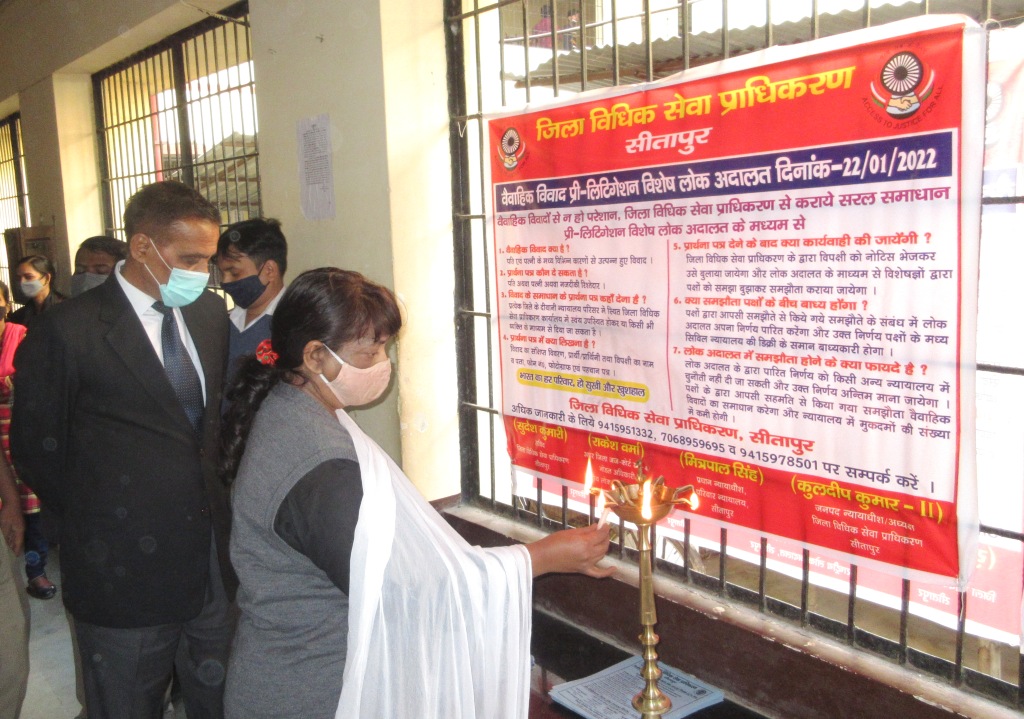 सीतापुर: राज्य विधिक सेवा प्राधिकरण उ0प्र0 के दिशा निर्देशों के अनुपालन में वैवाहिक विवाद से संबंधित प्री-लिटिगेशन विशेष लोक अदालत का आयोजन न्यायाधीश कुलदीप कुमार-द्वितीय की अध्यक्षता में किया जाना है। उक्त लोक अदालत के संबंध में प्री-लिटिगेशन हेल्पडेस्क का उद्घाटन परिवार न्यायालय के मा0 प्रधान न्यायाधीश मित्रपाल सिंह द्वारा दीप प्रज्जवलित कर किया गया।