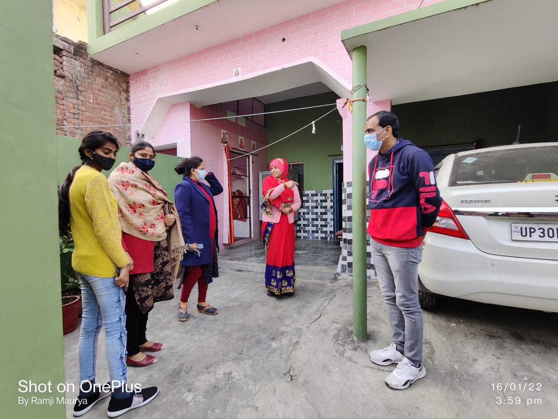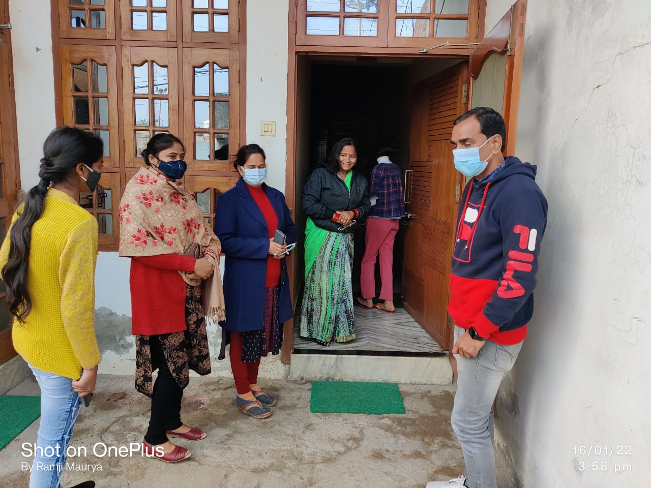 डोर टू डोर कोविड वैक्सीनेशन सर्वे कर लोगों को अधिशासी अधिकारी रेणुका यादव ने किया प्रेरित
