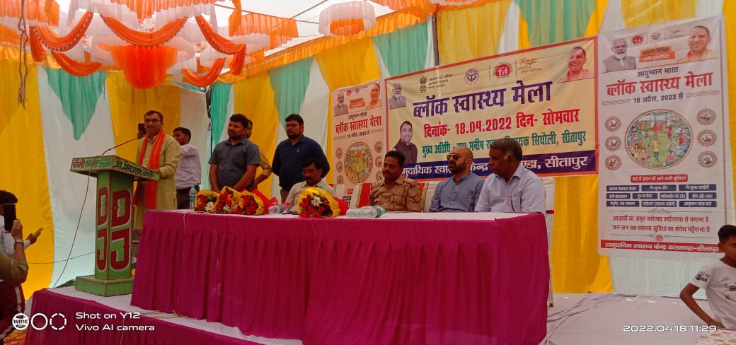 सीतापुर: सामुदायिक स्वास्थ्य केंद्र कसमंडा पर आजादी के अमृत महोत्सव के अंतर्गत ब्लाक स्तरीय स्वास्थ्य मेले का आयोजन किया गया। मेले मे स्वास्थ्य से संबंधित विभिन्न विभिन्न विभागों द्वारा काउंटर लगाकर आगंतुक को जानकारी दी गयी।कार्यक्रम का उद्घाटन स्थानीय विधायक मनीष रावत द्वारा किया गया। इस दौरान विधायक द्वारा आईसीडीएस विभाग द्वारा एक बच्चे का अन्नप्रासन व गर्भवती महिला के गोदभराई का कार्यक्रम कराया गया।