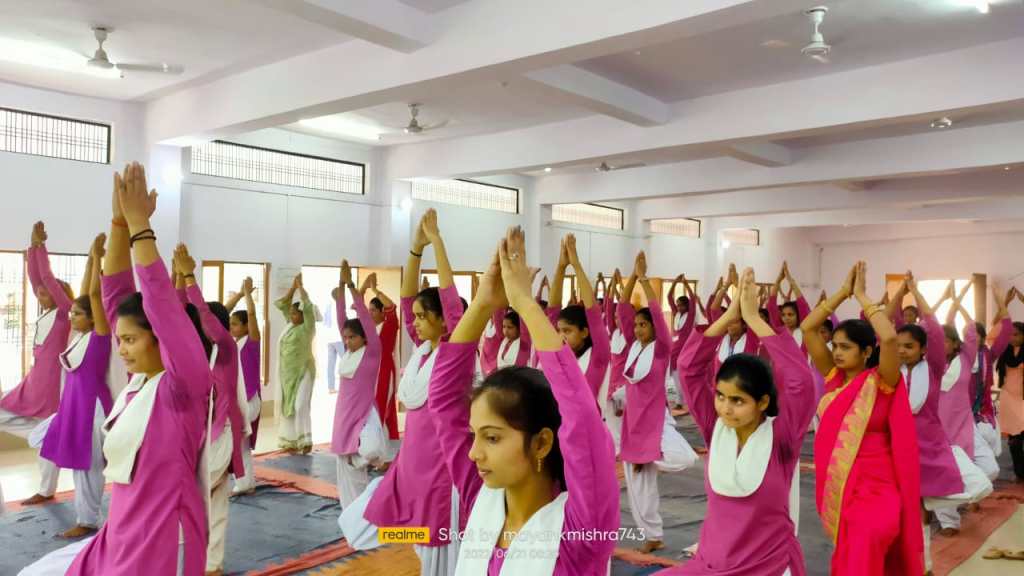 मिश्रिख (सीतापुर ) :- अंतर्राष्ट्रीय योग दिवस पर डॉ. नीरज त्रिपाठी, प्राचार्य के मार्गदर्शन में मनाया गया! योग प्रशिक्षक के रूप में डा सबा अज़ीज़ फ़ातिमा ने सर्वप्रथम प्रार्थना की करायी, प्रार्थना में यह बताया गया कि हम सभी प्रेम से मिलकर चलें, मिलकर बोलें और सभी ज्ञानी बने, अपने पूर्वजों की भांति हम सभी कर्तव्यों का पालन करें!