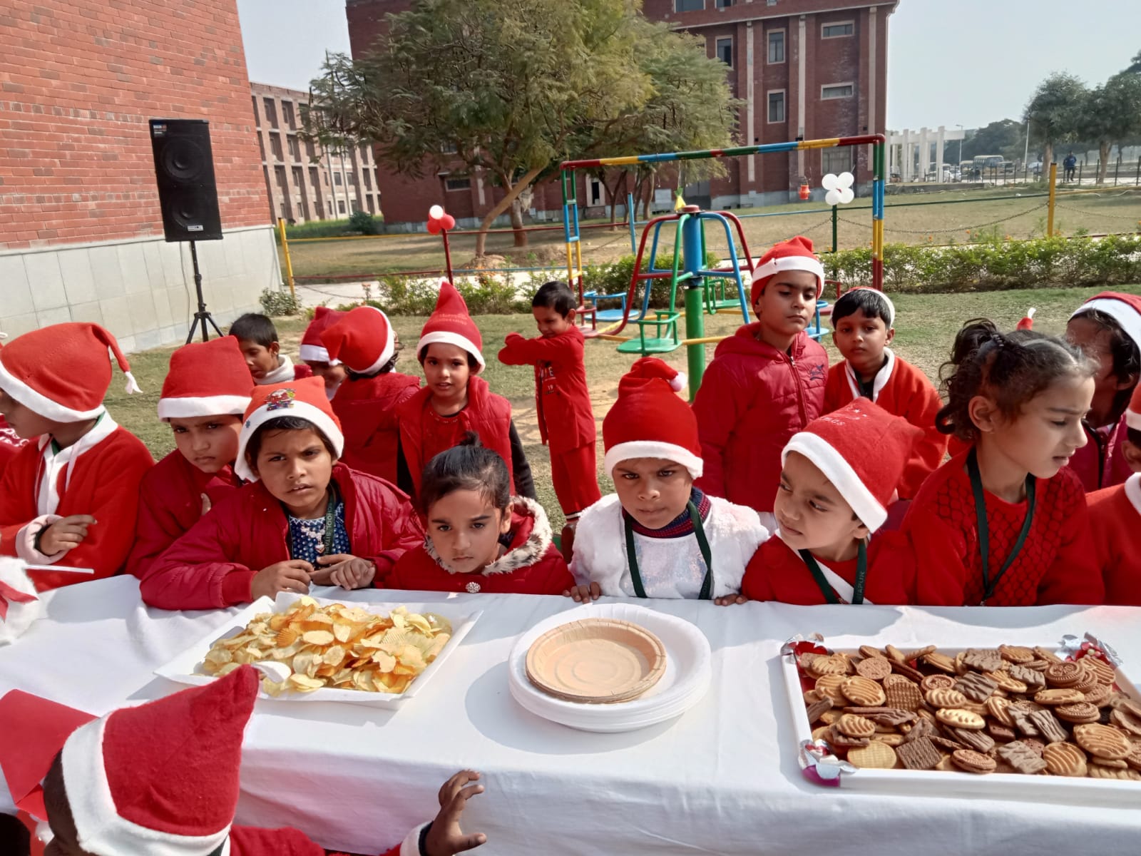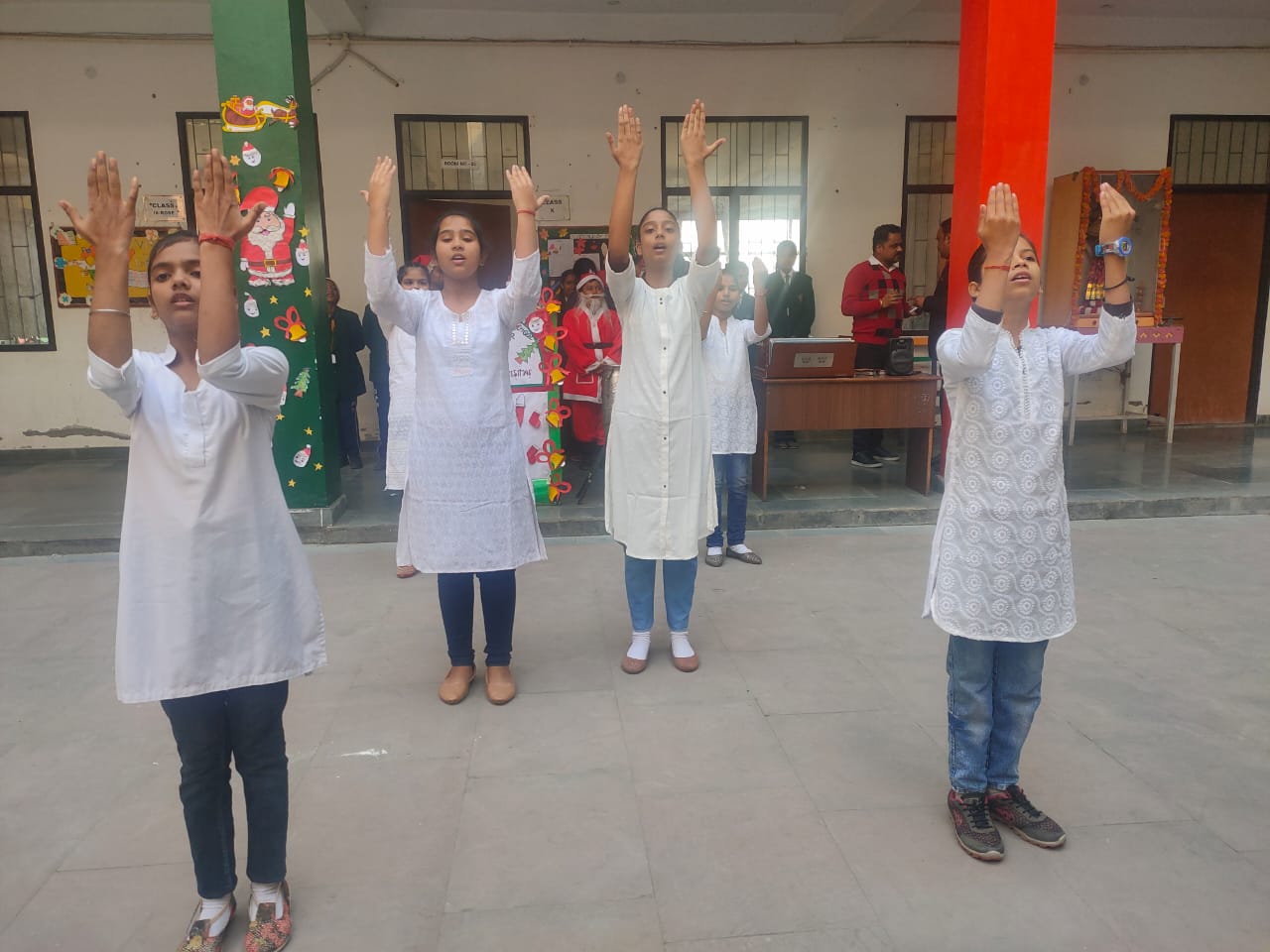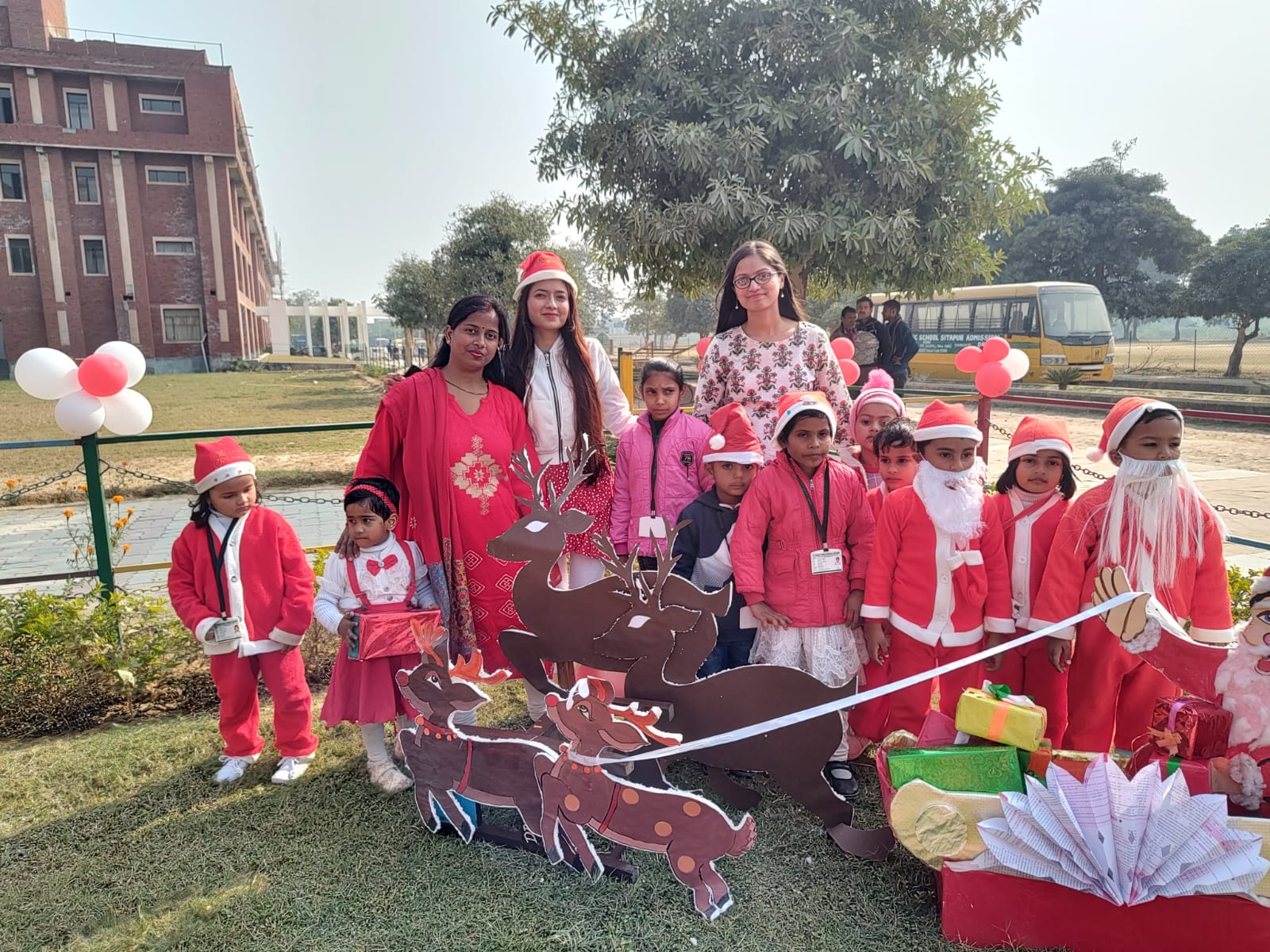 इस अवसर पर विद्यालय परिसर को रंग-बिरंगे गुब्बारों, घंटियों, क्रिसमस ट्री, संता क्लॉस, स्नोमैन से सजाया गया।