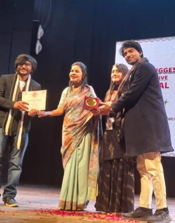 जयपुर। जयपुर इंटरनेशनल फिल्म फेस्टिवल (जेआईएफएफ) 2023 में राइट क्लिक प्रोडक्शन की फिल्म ‘हू एम आई’ को ‘. वेस्ट रोमांटिक मूवी’ के अवॉर्ड से सम्मानित किया गया। जयपुर के महाराणा प्रताप सभागार में रेड कार्पेट ओपनिंग सेरेमनी एन्ड अवार्ड सेरेमनी का आयोजन हुआ। इस अवसरपर ‘हू एम आई’ के डायरेक्टर शिरीष खेमरिया ने बेस्ट रोमांटिक मूवी अवॉर्ड ग्रहण किया। इस दौरान ‘हू एम आई’ की पूरी टीम मौजूद थी। फिल्म के प्रोड्यूसर शिरीष प्रकाश, मुख्य एक्टर अभिनेता चेतन शर्मा और ऋषिका चांदनी के अलावा फिल्म के क्रिएटिव एडवाइजर डॉ आलोक प्रकाश और एक्जीक्यूटिव प्रोड्यूसर डॉ हेमेंद्र शर्मा मौजूद थे।