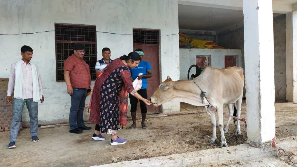 आज सोमवार को नव नियुक्त अधिशाषी अधिकारी रश्मि सिंह ने कान्हा गौशाला का निरीक्षण किया संरक्षित गौवंशों को गुड़ चना खिलाया।