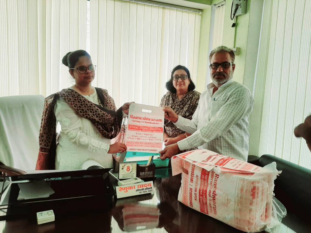 सीतापुर: शासन एवं जिलाधिकारी के निर्देश के क्रम में आज सोमवार को नगर पंचायत सिधौली में 14 जुलाई से 21 जुलाई तक चलाए जाने वाले विशेष “महानगर सफाई अभियान” के अंतर्गत नगर पंचायत के सिद्धेश्वर नगर वार्ड में स्थित सिद्धेश्वर मंदिर को प्लास्टिक मुक्त क्षेत्र घोषित किया गया है ब्राइट पब्लिक स्कूल की प्रबंधक डॉ ऋतु जैन एवं रामेश्वरम इंटरनेशनल अकैडमी की प्रिंसिपल श्रीमती आभा के सहयोग से 10,000 थैले का वितरण किया गया ।