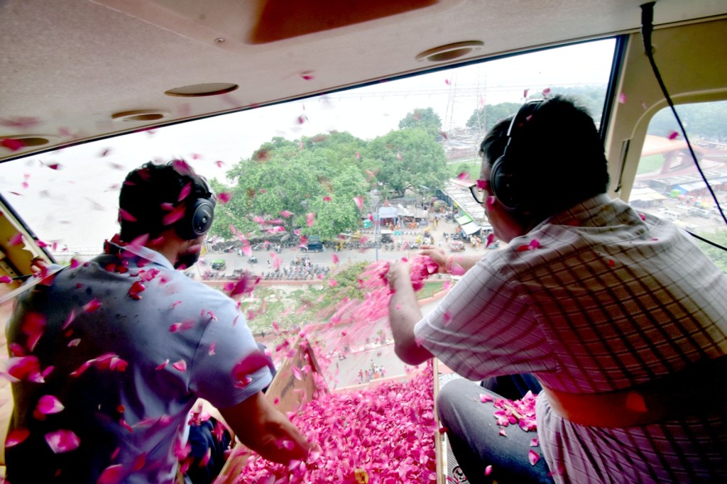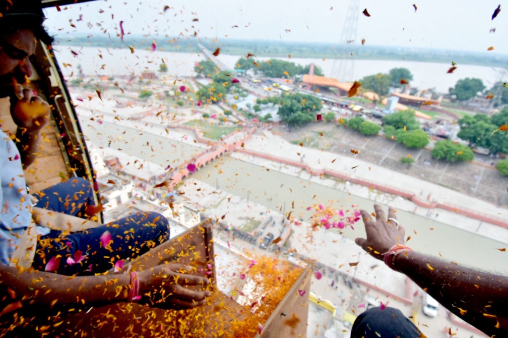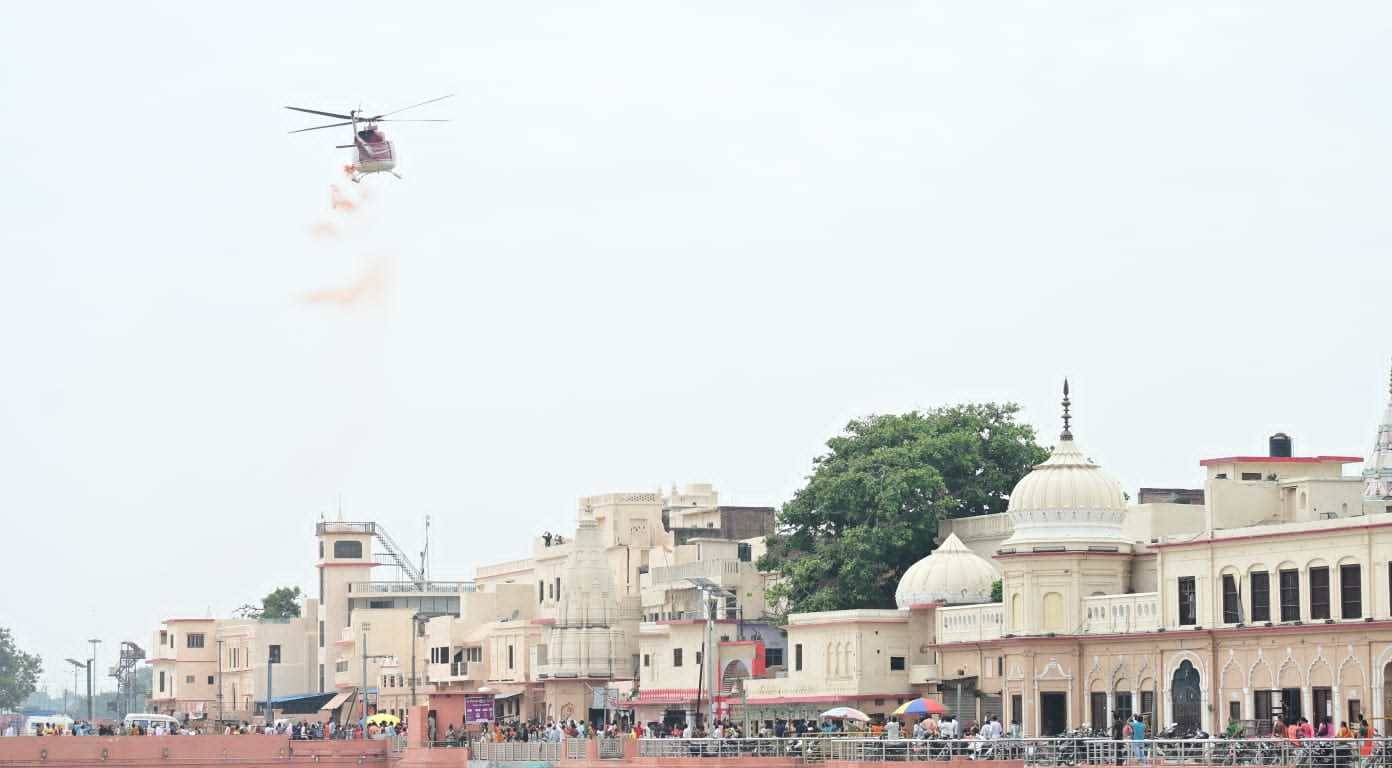 लखनऊ: सावन में प्रदेश में शिवभक्त कांवड़ियों पर पुष्पवर्षा का क्रम तीसरे सोमवार को भी जारी रहा। सावन के पिछले दो सोमवार को जहां काशी, मेरठ और सहारनपुर में पुष्पवर्षा की गई वहीं तीसरे सोमवार को रामनगर, बाराबंकी स्थित लोधेश्वर महादेव मंदिर में हेलीकॉप्टर द्वारा कांवरियों पर पुष्प वर्षा की गई। इसके अलावा अयोध्या में भी सरयूतट पर शिवभक्तों पर योगी सरकार ने पुष्पवर्षा कराई है।