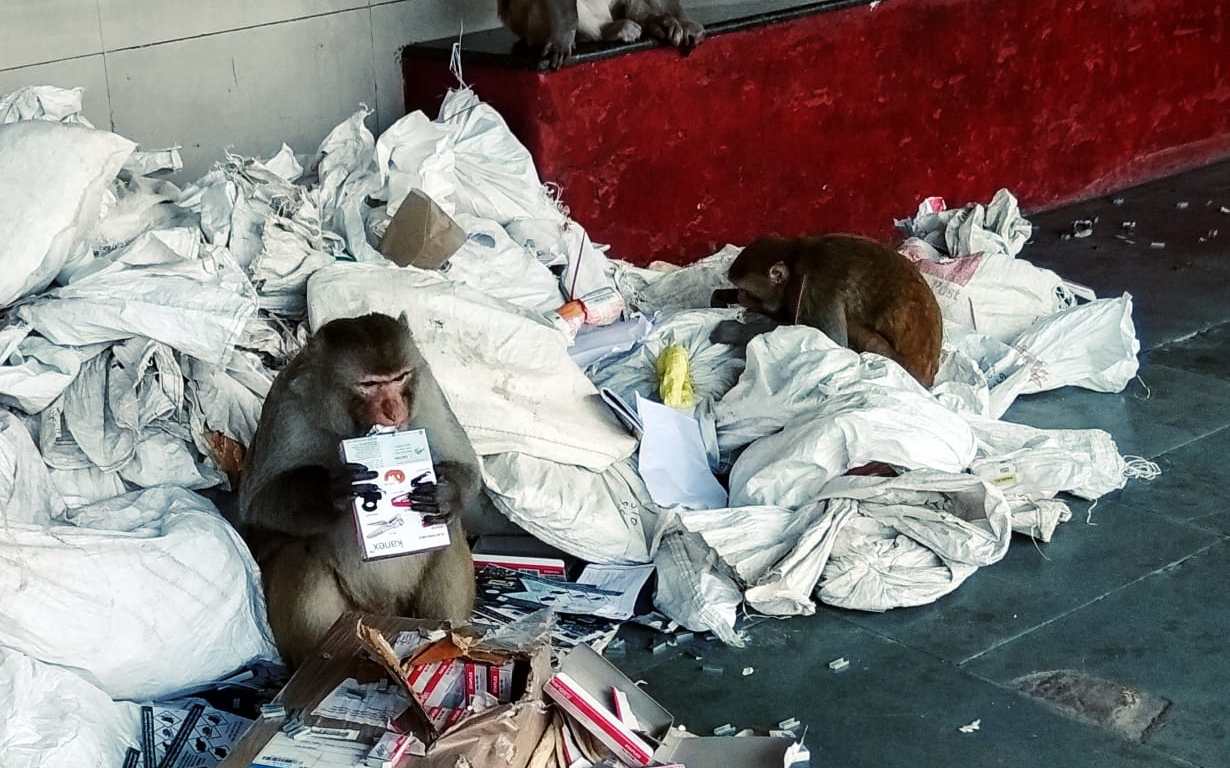सुरक्षा को भेदकर बन्दरों ने डाक पार्सल को किया तहस-नहस