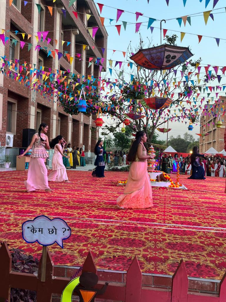 स्कूल के मैदान को पारंपरिक रूपांकनों, रंगीन पर्दों और सेल्फी पॉइंट से खूबसूरती से सजाया गया था । वहीं गीत-संगीत से भरपूर डांडिया उत्सव की शुरुआत सचिव सुमन मेहरोत्रा ने दीप प्रज्वलित कर किया। इस अवसर पर अति विशिष्ट अतिथि डॉ. कमल बैजल, डॉ. इशिता मेहरोत्रा, ई. आशीष जी भी मौजूद रहे।