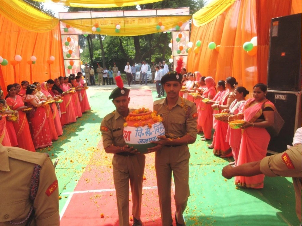 एन0सी0सी0 कैडटों द्वारा इनकी अगवानी की गयी तथा महिलाओं द्वारा पुष्प वर्षा कर स्वागत किया गया।