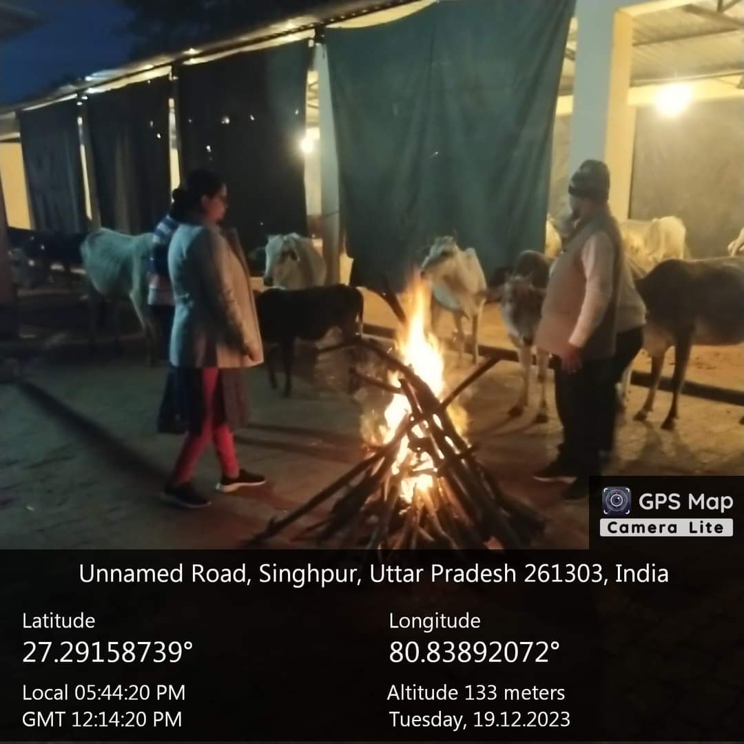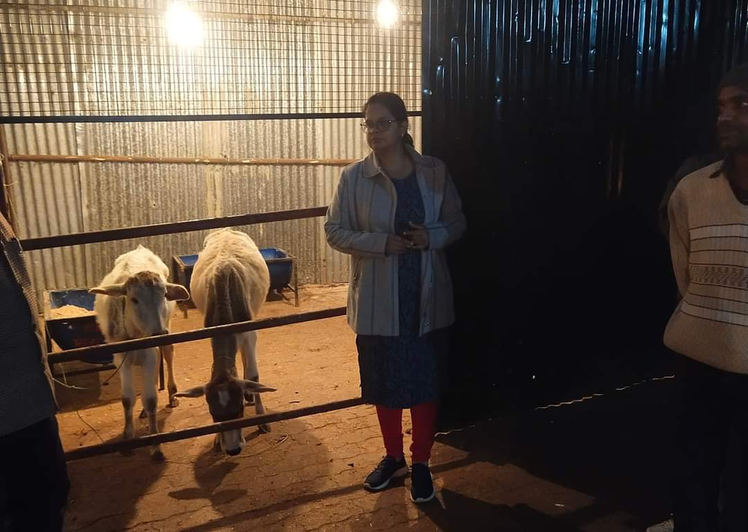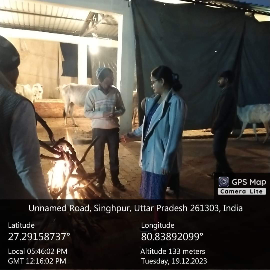 ईओ रेणुका यादव ने कान्हा गौशाला में लगाई गई हैलोजन लाइट, तिरपाल व अलाव आदि व्यवस्था का निरीक्षण किया।