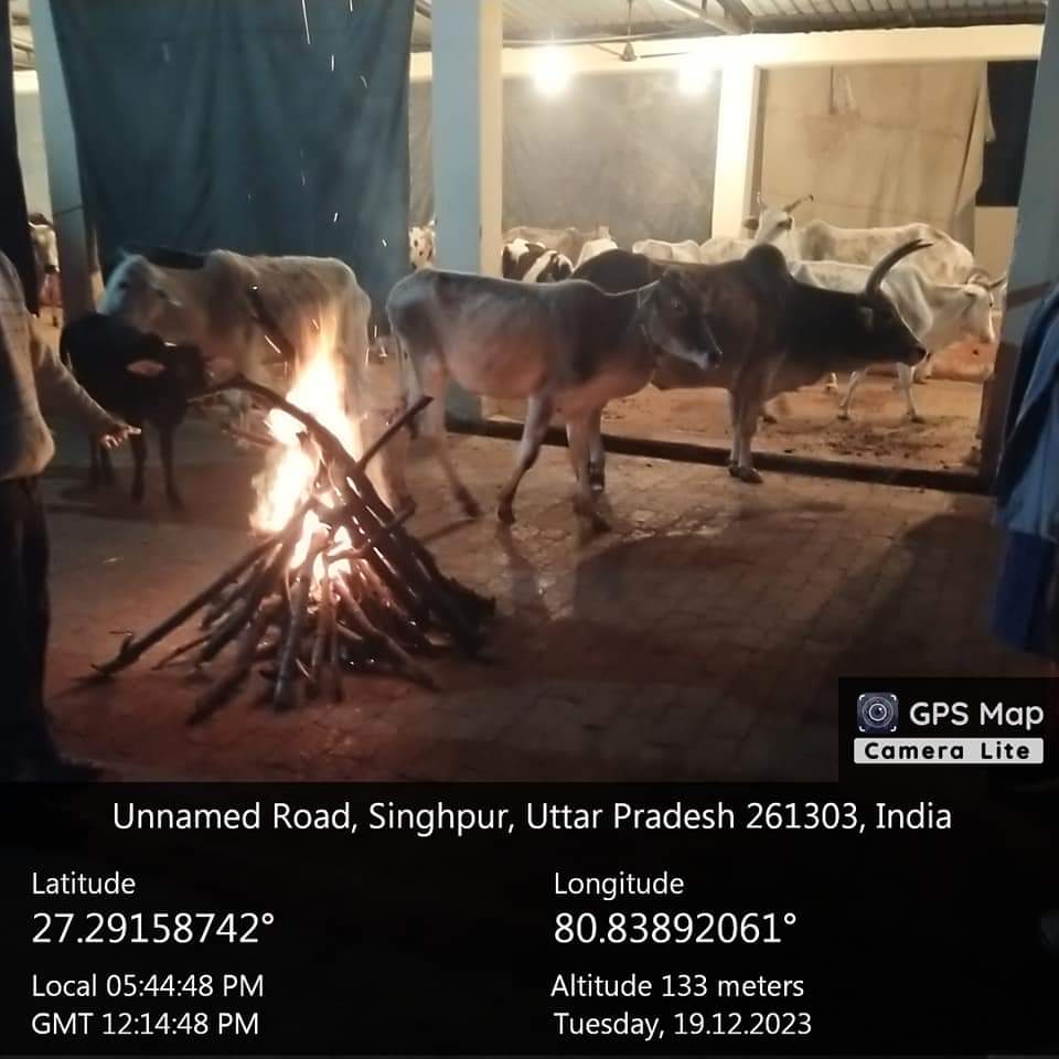सीतापुर: नगर पंचायत सिधौली के बहादुरपुर स्थित कान्हा गौशाला में ठंड व शीत लहर के प्रकोप को देखते हुए अधिशासी अधिकारी रेणुका यादव के आदेश पर गौशाला में तिरपाल को लगाया गया है, कान्हा गौशाला में तापमान को बनाए रखने के लिए हैलोजन लाइट लगाई गई है।