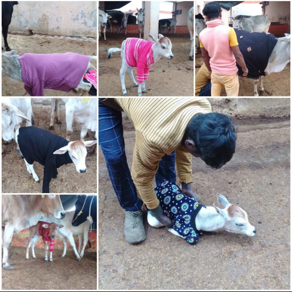 कान्हा गौशाला में पशुओं को मिले गर्म कपड़े