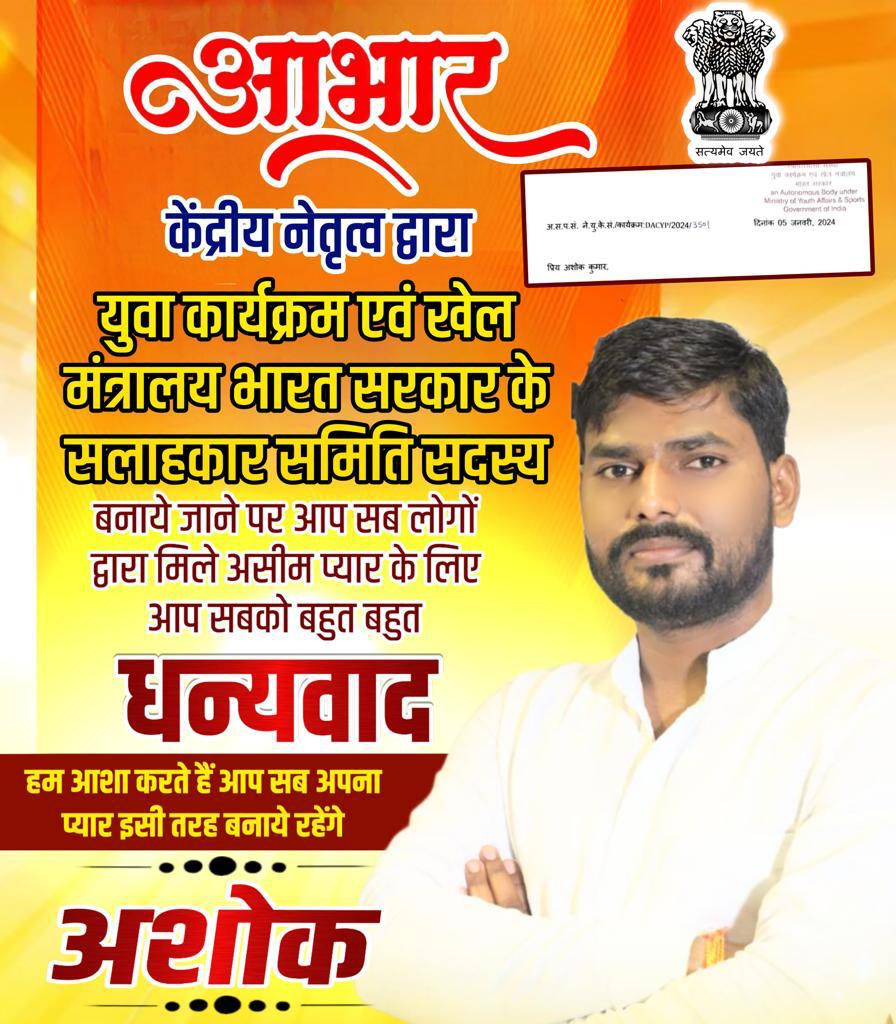दिल्ली: भारतीय जनता पार्टी आईटी सेल दिल्ली के प्रभारी अशोक कुमार को केंद्रीय युवा मामले और खेल मंत्री अनुराग सिंह ठाकुर की संस्तुति पर केंद्रीय नेतृत्व द्वारा युवा कार्यक्रम एवं खेल मंत्रालय भारत सरकार के सलाहकार समिति का सदस्य नामित किया गया है।