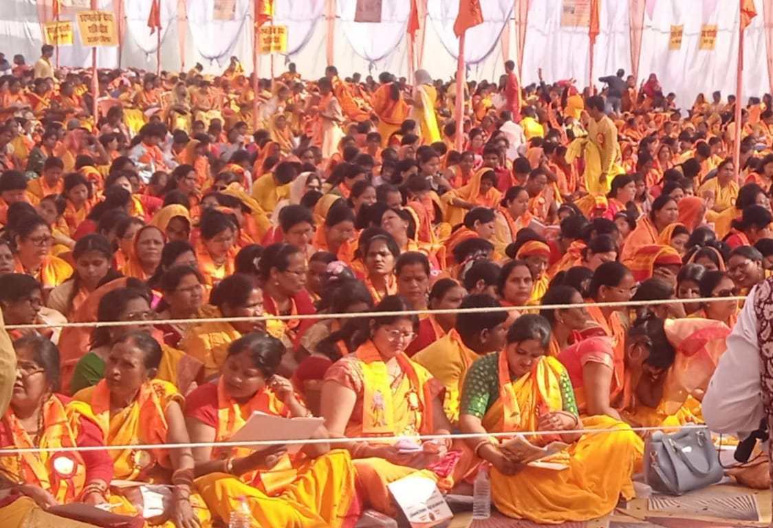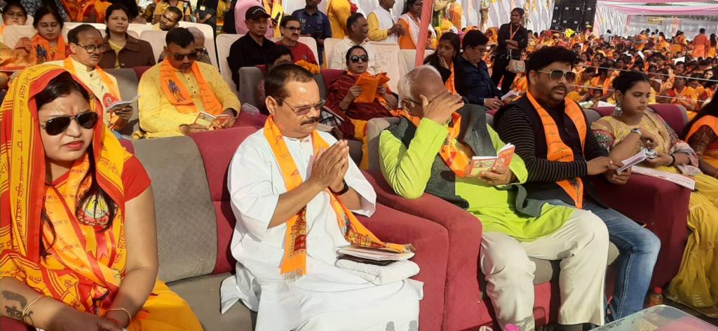 लखनऊ: पीले वस्त्रों में आई हजारो महिलाओं ने आज यहां गोमतीनदी तट पर बने झूलेलाल घाट पर सामूहिक सुंदरकांड का पाठ किया। समाजसेविका सपना गोयल की अगुवाई में आयोजित इस महाअनुष्ठान का आरंभ लोकप्रिय गायक पंकज मिश्रा (दिल्ली) के भजन “राम आएंगे” से हुआ। हनुमान चालीसा के पाठ के उपरांत, सुंदरकांड के सरस पाठ की अगुआई भी पंकज मिश्रा ने ही की। इस क्रम में विद्द्द्योलमा शक्तिपीत की रजनी शुक्ला के निर्देशन में गणेश वंदना ‘जयदेव जयदेव जय मंगलमूर्ति’ पेश की गई। उनके ही निर्देशन में रामोत्सव के अंतर्गत प्रभु राम के जन्म से लेकर होलिकोत्सव तक के विविध प्रसंगों को नृत्य के माध्यम से प्रभावी रूप से पेश किया गया।