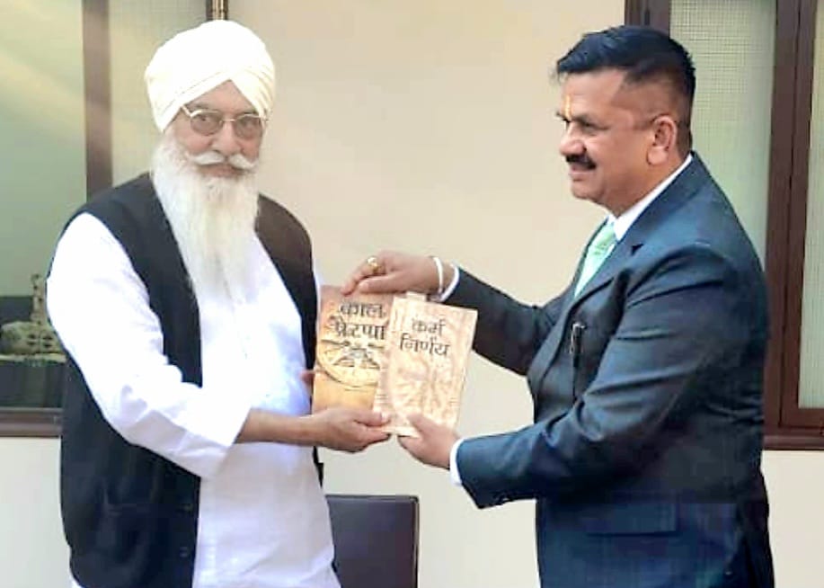 बाबा गुरिंदर सिंह को स्वलिखित काल प्रेरणा एवं कर्म निर्णय नामक पुस्तक की भेंट
