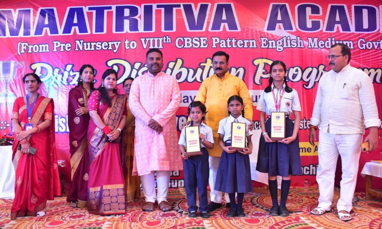 अयोध्या: अशर्फी भवन चौराहा अयोध्या स्थित मातृत्व अकादमी में वृहस्पतिवार शाम 4 बजे मुख्य अतिथि द्वारा दीप प्रज्वलित कर कार्यक्रम का शुभारंभ हुआ तथा पुरस्कार वितरण का समारोह का संपन्न किया गया। जिसमें मुख्य अतिथि के रूप में पूर्व शिक्षा मंत्री डॉ सतीश चंद्र तथा जगतगुरु अशर्फी भवन पीठाधीश्वर स्वामी श्रीधराचार्य पुरस्कार वितरण कर बच्चों का उत्साहवर्धन किया। इस कार्यक्रम में विभिन्न सांस्कृतिक कार्यक्रमों का भी आयोजन विधालय के बच्चो द्वारा किया गया। बच्चों ने अकादमी रैंक तथा विभिन्न प्रकार की प्रतियोगिताओं में भाग लेकर स्थान प्राप्त कर विद्यालय का नाम रोशन किया।