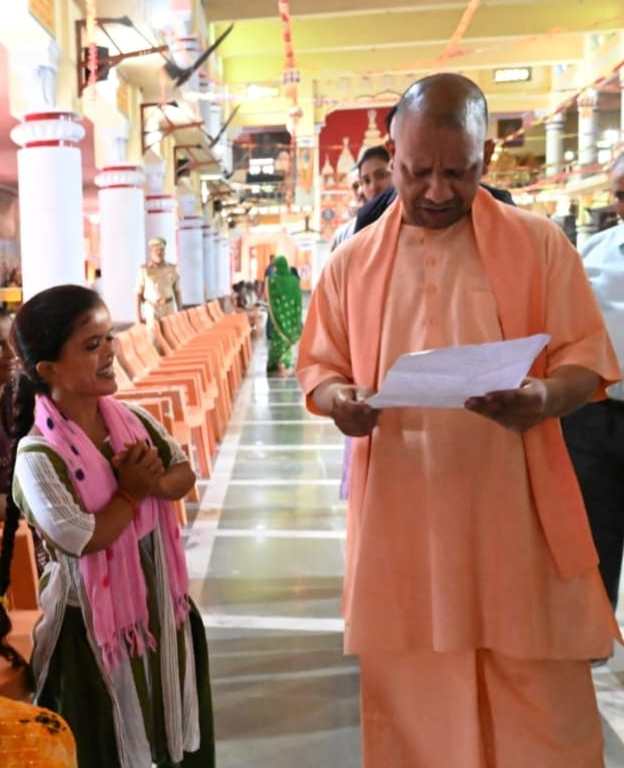 गोरखनाथ मंदिर में रविवार सुबह मुख्यमंत्री योगी आदित्यनाथ वहां मौजूद लोगों की समस्याएं सुन रहे थे। इस दौरान पूरी गंभीर गंभीरता और संवेदनशीलता से एक-एक व्यक्ति की समस्या सुनते हुए, इसके निस्तारण के लिए मौके पर ही अधिकारियों को जरूरी दिशा निर्देश देते रहे। जनता दर्शन में फतेहपुर से आई मेनश्री नाम की बहुत छोटे कद की महिला की समस्या सुनते ही सीएम योगी मुस्कराने लगे।