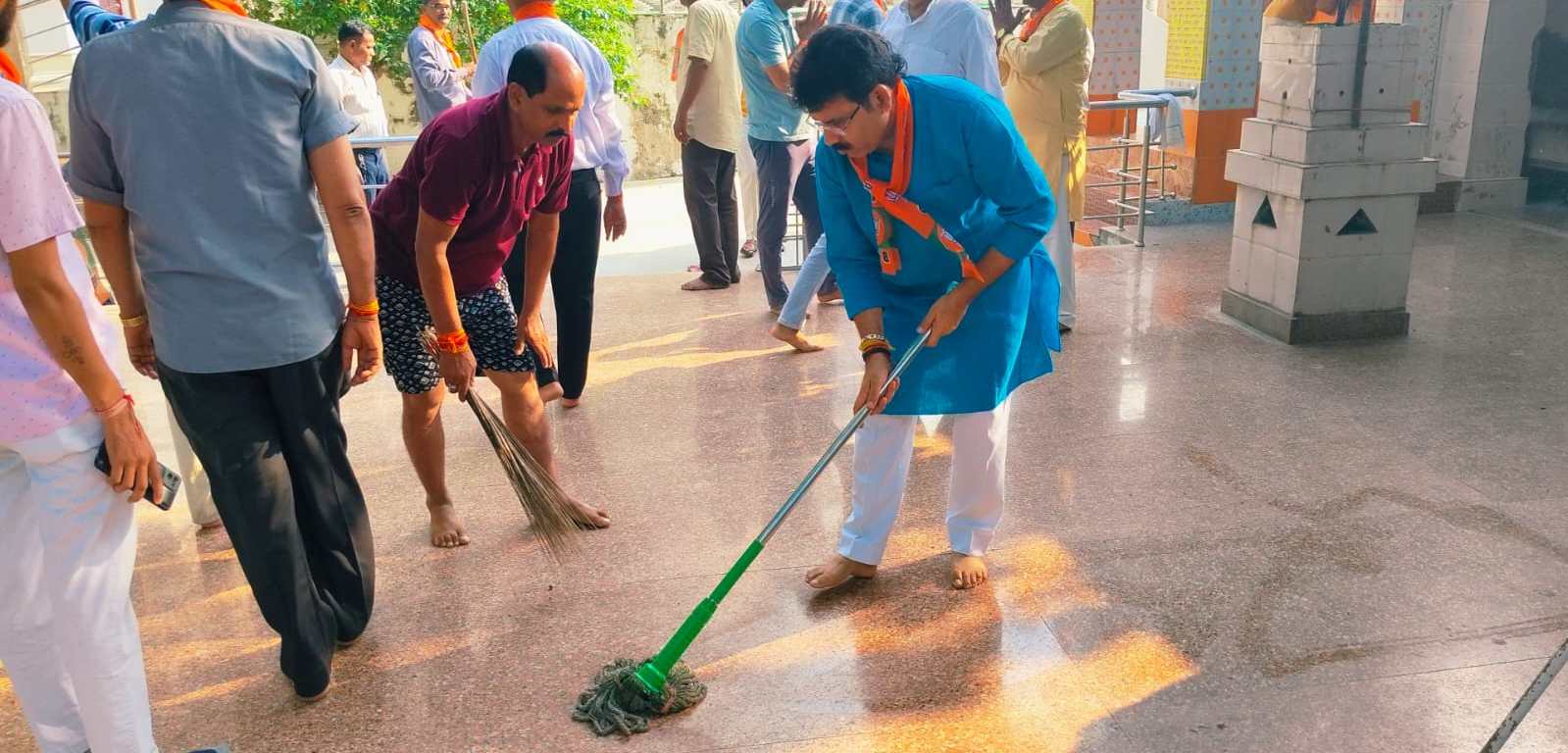 सीतापुर। भारतीय जनता पार्टी के तत्वाधान में विश्व में सत्य और अहिंसा का मार्ग प्रशस्त करने वाले राष्ट्रपिता महात्मा गांधी की155 वीं जयंती के अवसर पर भाजपाइयों द्वारा बापू को श्रद्धा सुमन अर्पित किए गए। इस अवसर पर आयोजित सेवा पखवाड़ा के स्वच्छता अभियान के अंतर्गत जिला अध्यक्ष राजेश शुक्ला द्वारा सीतापुर विधानसभा के तरीनपुर मोहल्ले में स्थित ताड़कनाथ बाबा मंदिर में साफ सफाई की गई,एवं मंदिर में पूजा अर्चना की गई। इस अवसर पर जिला अध्यक्ष राजेश शुक्ला ने बताया कि प्रधानमंत्री नरेंद्र मोदी के आवाहन के अनुरूप आज हम सब अपने आसपास स्वच्छता अभियान चलाकर सेवा पखवाड़ा में भाग ले और स्वच्छ भारत स्वस्थ भारत के संकल्प को सफल बनाएं। स्वच्छता से विकसित भारत का मार्ग भी प्रस्तत होगा। इस अवसर पर सीतापुर नगर टू मंडल के पदाधिकारियों ने जिला अध्यक्ष राजेश शुक्ला के नेतृत्व में स्वच्छता अभियान में भाग लिया। इसी के साथ भारतीय जनता पार्टी के सभी 40 मंडलों में पार्टी पदाधिकारियों व जनप्रतिनिधियों के द्वारा स्वच्छता अभियान चलाया गया । जिसमें मुख्य रूप से बिसवां में विधायक निर्मल वर्मा के नेतृत्व में स्वच्छता अभियान चलाया गया। परसेंडी मंडल में निवर्तमान विधायक सुनील वर्मा व मिश्रिख में नगर पालिका अध्यक्ष प्रतिनिधि बबलू सिंह के नेतृत्व में सफाई अभियान चलाया गया।