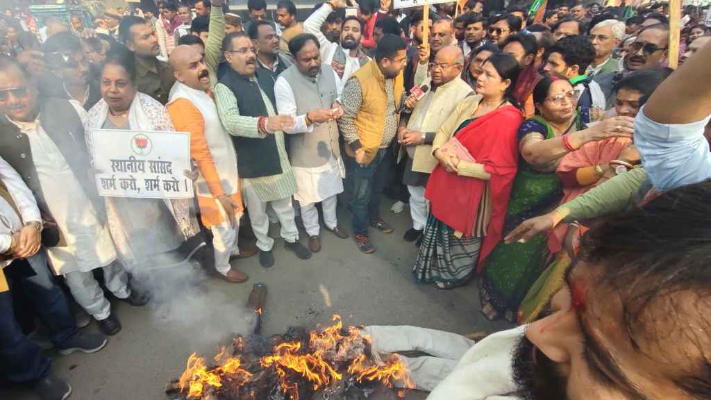 बलात्कार के आरोपी कांग्रेस सांसद राकेश राठौर की गिरफ्तारी को लेकर सड़कों पर उतरे भाजपाई