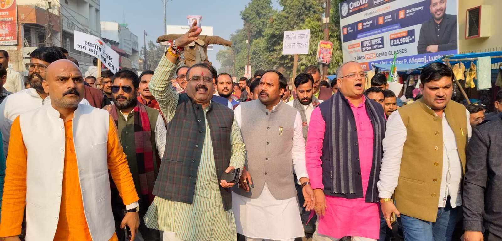 सीतापुर। बीते दिनों कांग्रेस सांसद राकेश राठौर पर नगर कोतवाली क्षेत्र की एक महिला ने यौन शोषण का आरोप लगाया था। महिला ने इस बाबत पुलिस में शिकायत की थी पुलिस द्वारा मामले का संज्ञान लेते हुए प्राथमिकी दर्ज की गई थी और आरोपी सांसद को अपना पक्ष रखने के लिए अंतिम अवसर दिया गया था। लेकिन जवाब देने के बजाय आरोपी सांसद की लोकेशन ट्रेस नहीं हो पा रही है इस बाबत भारतीय जनता पार्टी द्वारा क्षेत्रीय अध्यक्ष कमलेश मिश्र, जिला प्रभारी नीरज सिंह व राज्य पिछड़ा वर्ग आयोग के अध्यक्ष व निवर्तमान राजेश वर्मा जिला अध्यक्ष राजेश शुक्ला की उपस्थिति में जिला पदाधिकारियो व हजारों की संख्या में जनसामान्य मातृशक्ति के साथ सड़कों पर उतरकर महिला के साथ दुष्कर्म के आरोपी सांसद राकेश राठौर की गिरफ्तारी की मांग की गई इसी क्रम में उपस्थित जन समूह द्वारा लालबाग शहीद पार्क से होते हुए आंख अस्पताल के निकट अहिल्याबाई होलकर की प्रतिमा तक लोगों ने आरोपी सांसद की गिरफ्तारी के नारे लगाए एवं पार्टी नेताओं व जन सामान्य महिलाओं ने राकेश राठौर मुर्दाबाद के भी नारे लगाए। रानी अहिल्याबाई होल्कर की प्रतिमा के निकट मातृशक्ति द्वारा बलात्कार के आरोपी सांसद राकेश राठौर का पुतला भी जलाया गया। इस अवसर पर महिला शक्ति द्वारा पुतले को जूते की माला भी पहनाई गई । हजारों की संख्या में लोगों ने विरोध प्रदर्शन में भाग लिया।