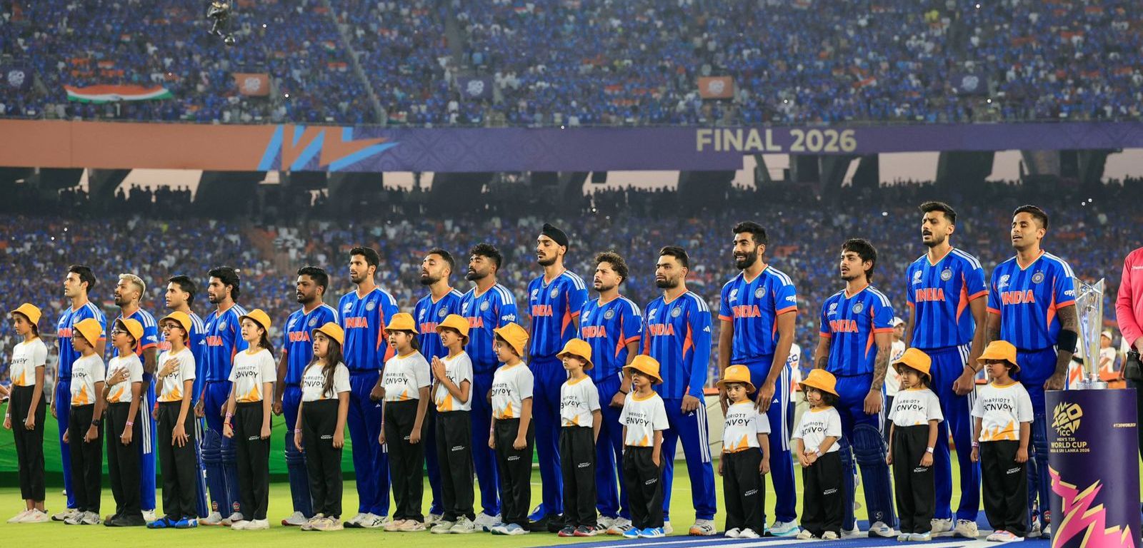 अहमदाबाद: क्रिकेट इतिहास में एक और सुनहरा अध्याय जुड़ गया जब India national cricket team ने शानदार प्रदर्शन करते हुए ICC Men’s T20 World Cup का खिताब अपने नाम कर लिया। फाइनल मुकाबले में भारत ने New Zealand national cricket team को 96 रन के बड़े अंतर से हराकर दमदार जीत दर्ज की।