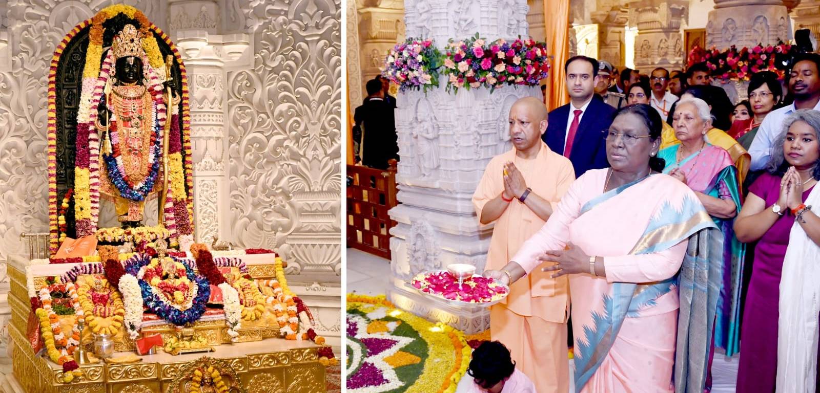अयोध्या। श्रीरामजन्मभूमि तीर्थ क्षेत्र ट्रस्ट के आमंत्रण पर राष्ट्रपति द्रौपदी मुर्मु डेढ़ साल के अंतराल पर दूसरी बार नवरात्रि के पहले दिन रामनगरी अयोध्या पहुंची।राम मंदिर में दूसरे तल पर राम परिवार दरबार में स्थापित किए जा रहे श्रीराम यंत्र के पूजन में राष्ट्रपति शामिल हुईं और रामलला का दर्शन किया। इससे पहले राष्ट्रपति ने राम मंदिर परिसर देखा और दुर्गा माता मंदिर में पूजा-अर्चना की।
