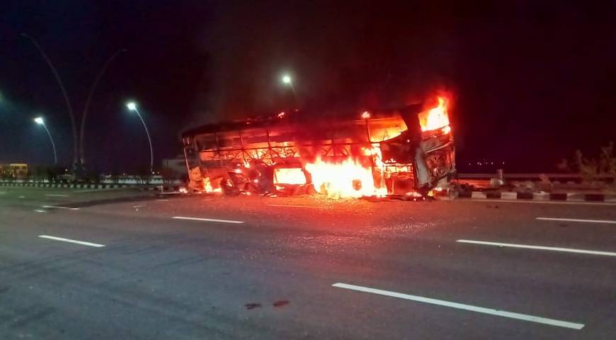 लखनऊ आगरा एक्सप्रेस वे के डिवाइडर में टकराने से एक प्राइवेट बस में लगी आग में 4 लोगों की मौत