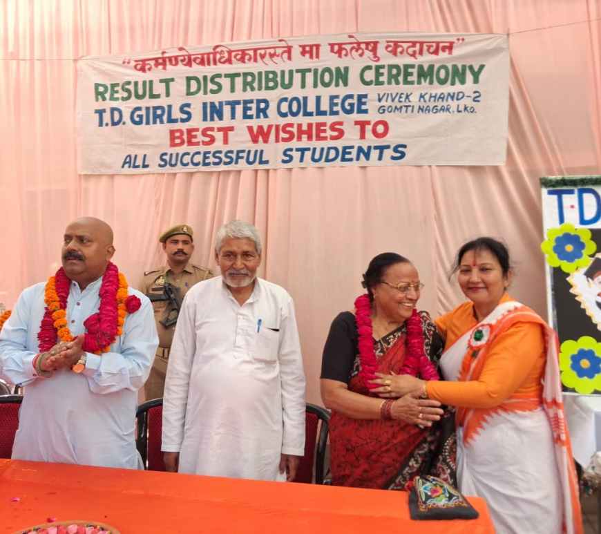 टीडी गर्ल्स कालेज में विद्यार्थियों को वितरित किया गया परीक्षाफल लखनऊ। टी०डी०गर्ल्स इण्टर कालेज में सत्र 2025-26 का परीक्षाफल वितरण किया गया। जिसका शुभारम्भ पूर्व मुख्यमंत्री उ०प्र० स्व० वीर बहादुर सिंह के सुपुत्र जितेन्द्र बहादुर सिंह, राज्यमंत्री उ०प्र० द्वारा किया गया।मंत्री के आगमन पर उन्हें विद्यालय की प्रधानाचार्या लक्ष्मी सिंह ने बुके देकर व प्रबन्धक महादेव प्रसाद यादव तथा संरक्षक आई० डी० यादव ने माला … Continue reading बच्चे के विकास में माता पिता की भूमिका अत्यधिक महत्वपूर्ण: लक्ष्मी सिंह