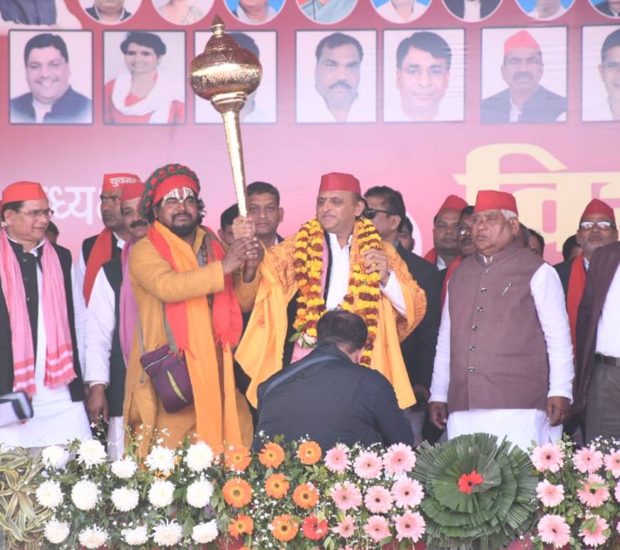 अयोध्या के धर्मगुरुओं ने गदाभेट कर अखिलेश यादव का स्वागत कर दिया आशीर्वाद