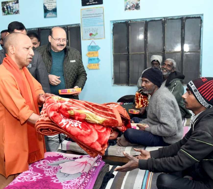 सीएम योगी सड़कों पर निकले, रैन बसेरों में पूछा लोगों का हाल।