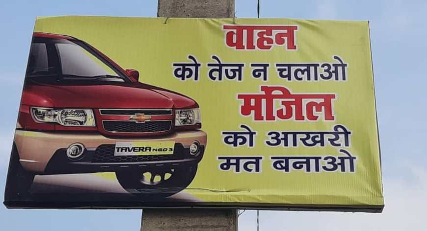डालमिया भारत शुगर एण्ड इण्डट्रीज लिमिटेड यूनिट जवाहरपुर के द्वारा चीनी मिल मार्ग पर लगाए गए सड़क सुरक्षा स्लोगन बोर्ड
