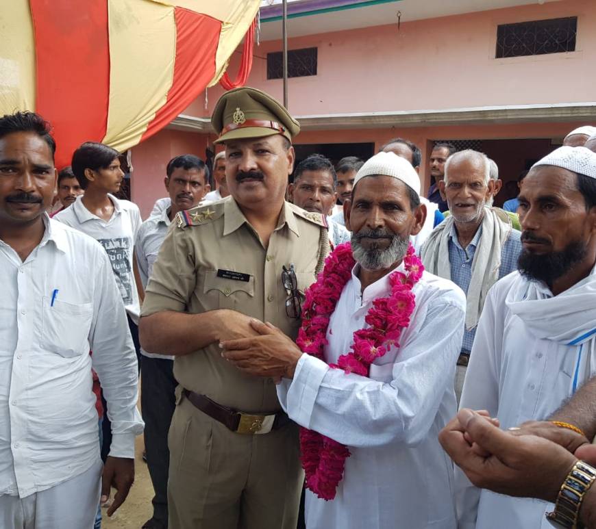 सफर के लिए रवाना हुए आजमीन-ए-हज, थाना पुलिस ने हज यात्रियों को माला पहनाकर दी विदाई