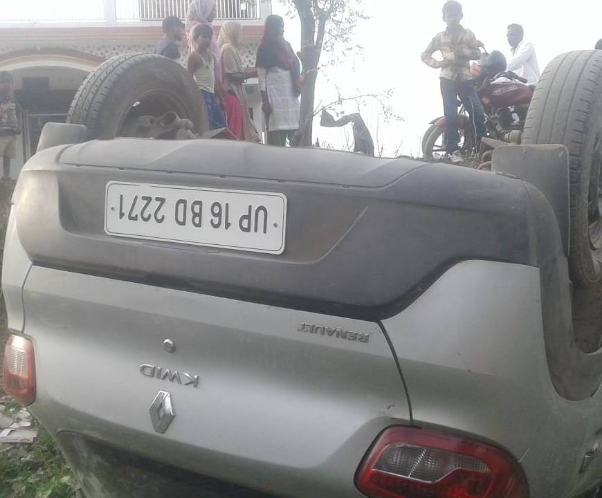 हरिरामपुर चौराहा पर अनियंत्रित होकर पलटी कार