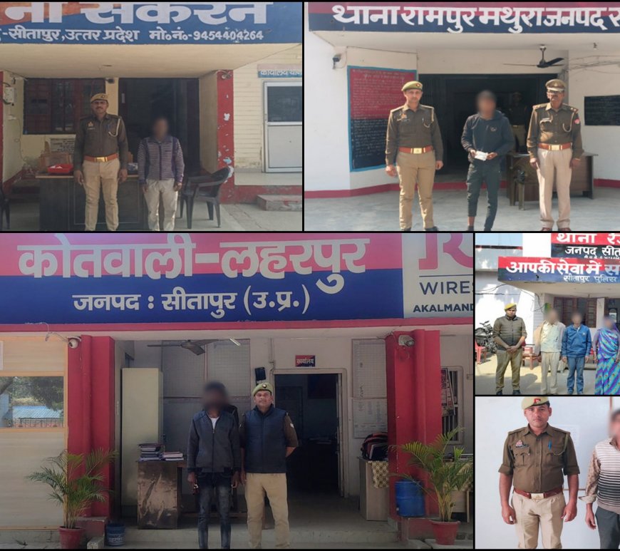 सीतापुर पुलिस की सख्त कार्रवाई: विभिन्न थानों की टीमों ने 07 वांछित/वारण्टी अभियुक्तों को किया गिरफ्तार
